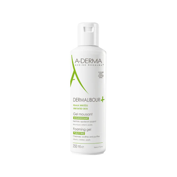 With DERMALIBOUR+ CICA-Purifying Foaming Gel and its formula with a copper-zinc complex enriched with Rhealba® Oat Plantlet Extract, A-DERMA offers a cleansing treatment that is both gentle and purifying.