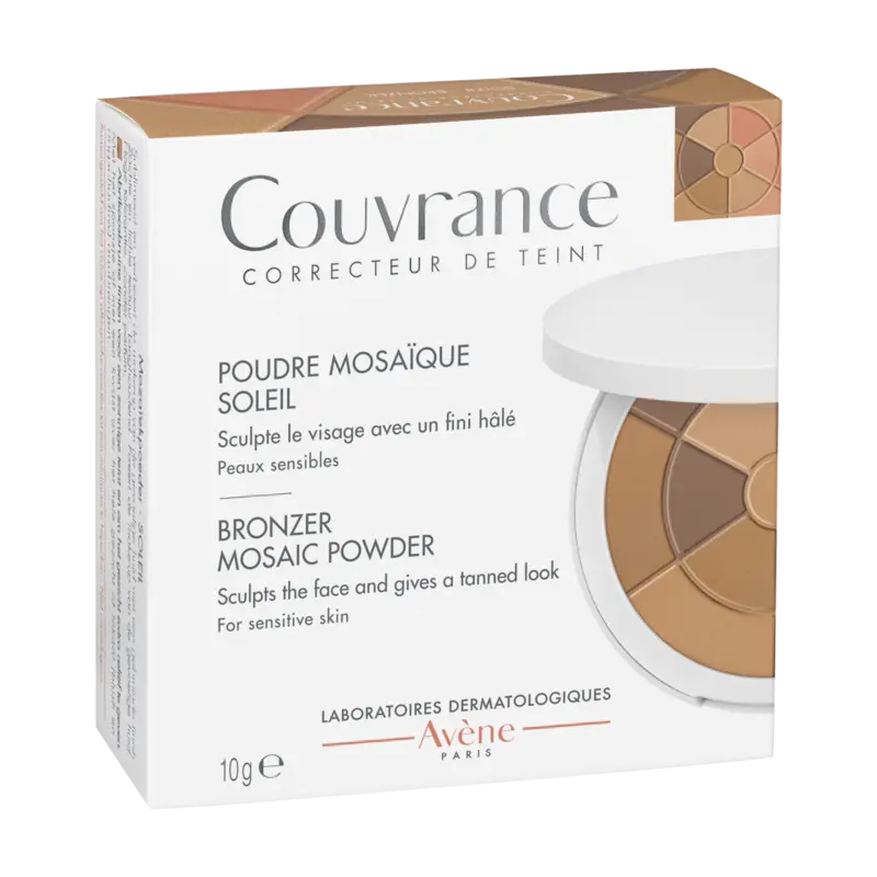 Avène Couvrance Powder Mosaic Brightness helps set the make-up and unify the complexion. This powder with corrective tones (green, purple, white, and beige) fixes the make-up and evens the complexion. Resistant to water and perspiration, it is ideal for a radiant and fresh make-up or to define the contours of the face.