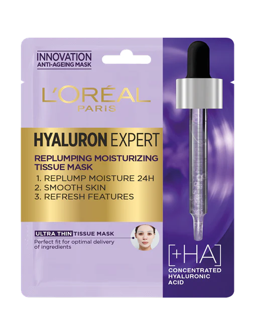 L’Oréal Hyaluron Expert Tissue Mask is formulated to replenish and rehydrate the skin.