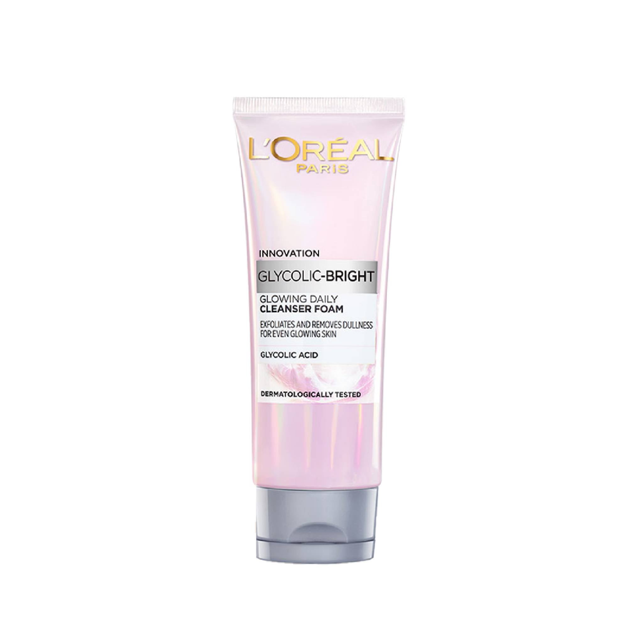 L’Oréal Glycolic Bright Cleanser Foam is a cleanser featuring brightening Glycolic Acid, which effectively exfoliates the skin and eliminates dullness, resulting in a radiant complexion.