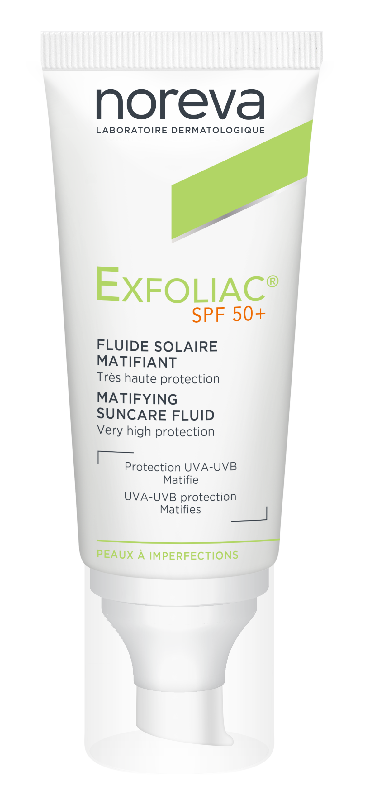 Specially formulated for oily skin with imperfections, Exfoliac® SPF 50+ Matifying Suncare Fluid provides optimal protection against UVA/UVB rays. Thanks to its unique complex, it purifies and mattifies the skin while protecting it from the harmful effects of UV rays. Its fluid, non-greasy texture provides unique comfort and pleasure of use.