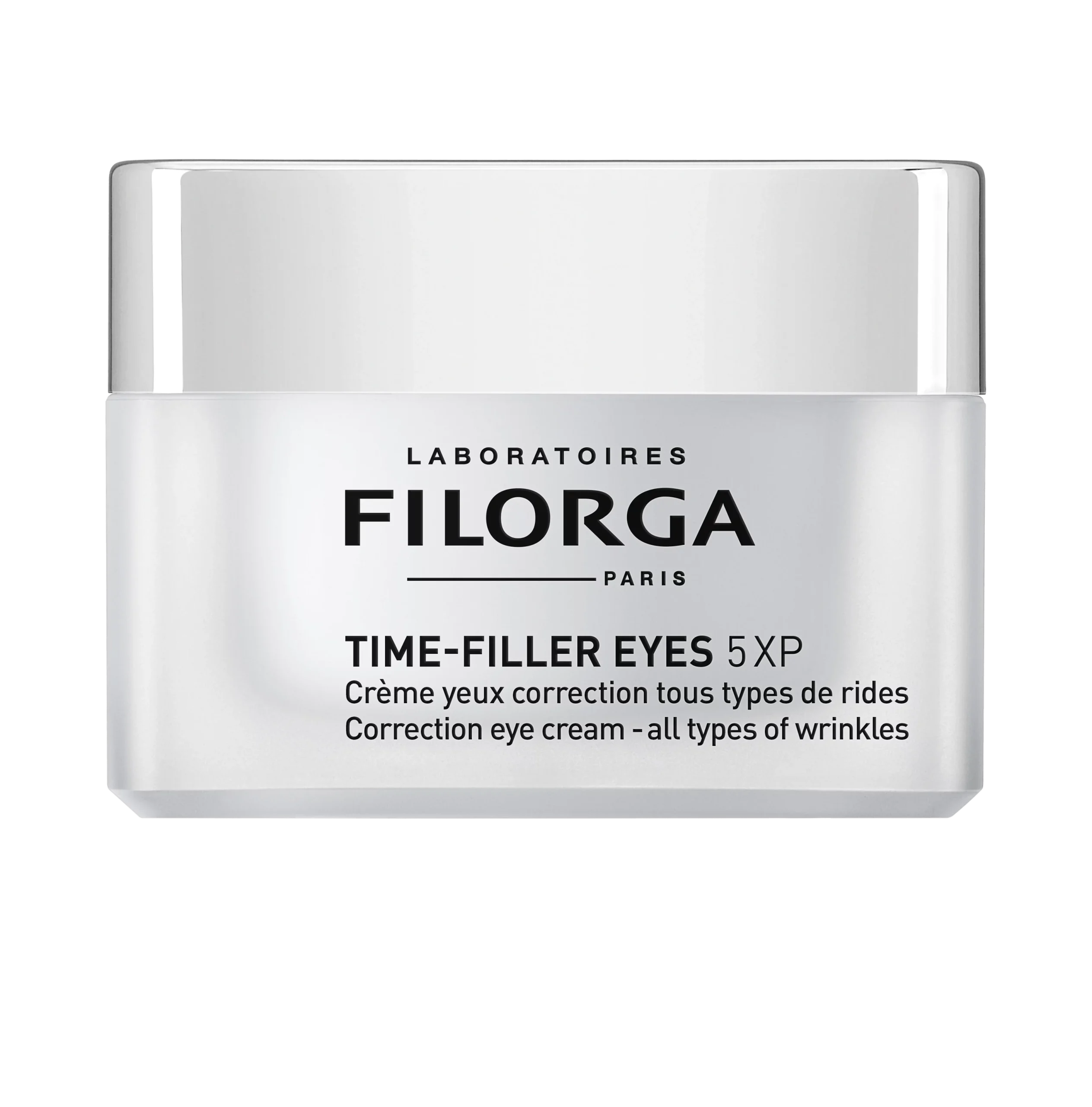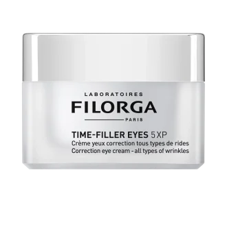 TIME FILLER EYES 5XP is a multi-correction anti-wrinkle cream that simultaneously targets 5 areas around the eyes: crow’s feet, under-eye wrinkles, frown lines, sagging eyelids, and dark circles.