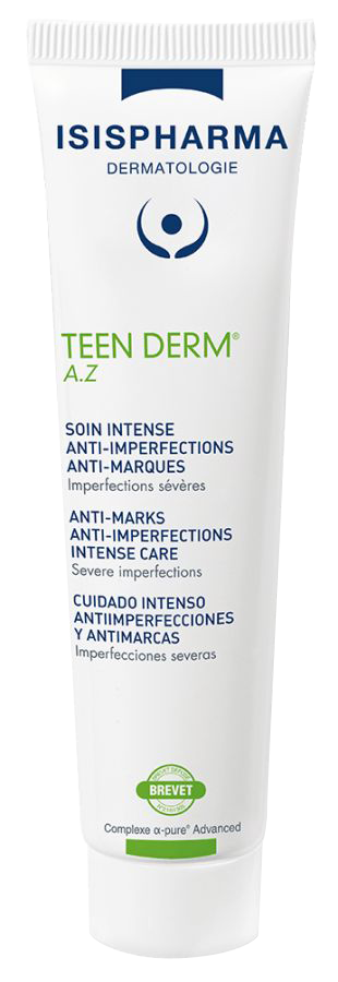 TEEN DERM ® A.Z. is a complete concentrated attack treatment for oily and acne prone skin with persistant blemishes and severe imperfections and hyperpigmented marks with ultra soothing effect that will result in reduction of blemishes in 5 days, reduction of inflammatory lesions and redness. It has a triple anti-blemish, anti- mark and anti-inflammatory actions
